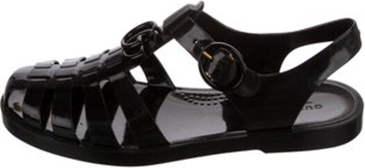 Gucci Rubber Slingback Flats Black Double G Logo Round-Toes Platform Multistrap & Buckle Closure at Ankles Designer