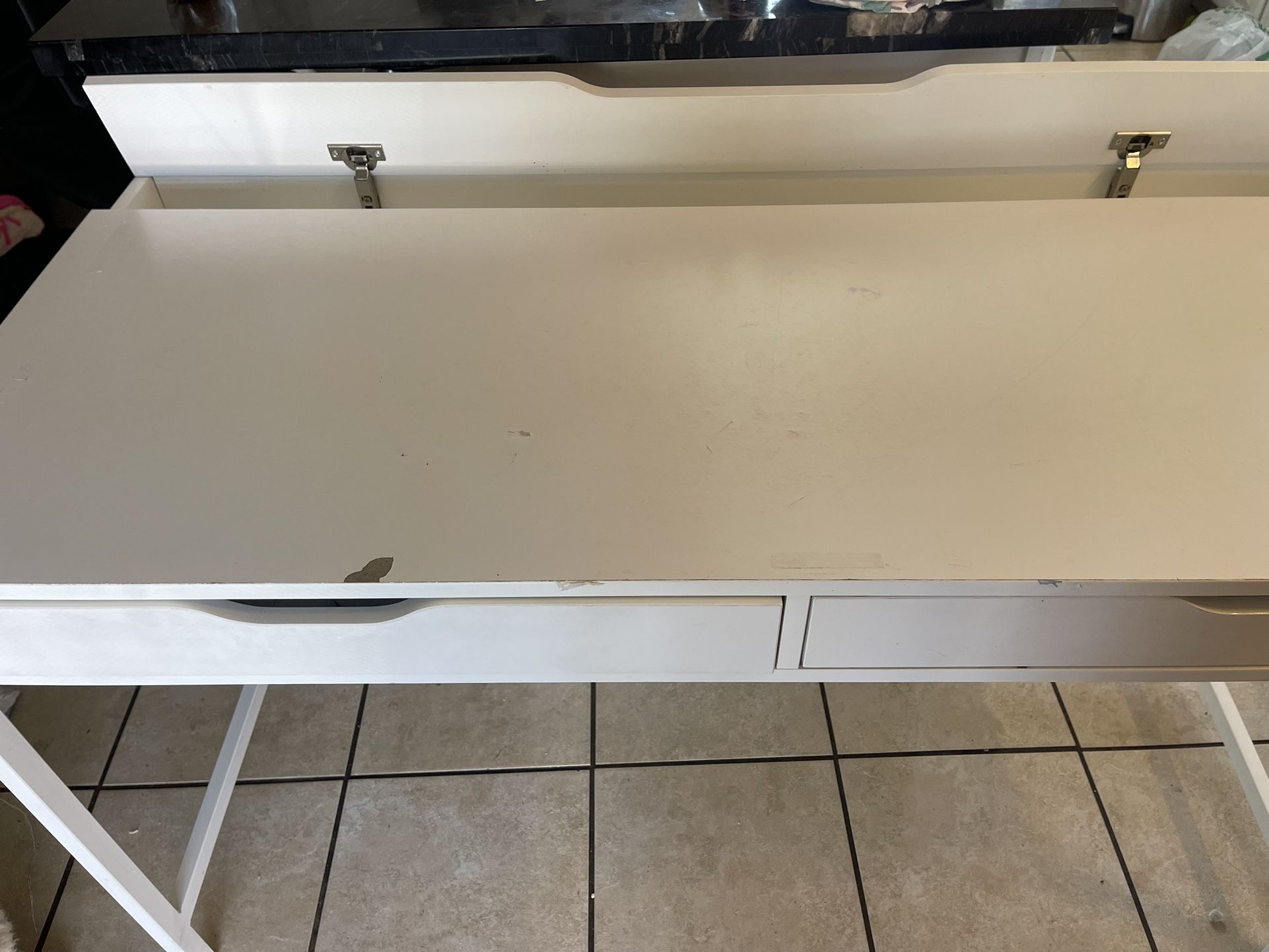 | Product Features | used white desk, it has a little damage | ||