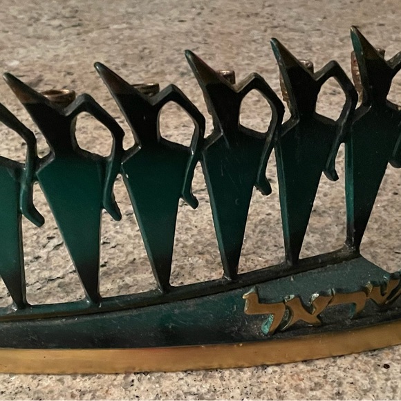 Vintage enamel brass Hanukkah menorah made in Israel REG. DES. 1734