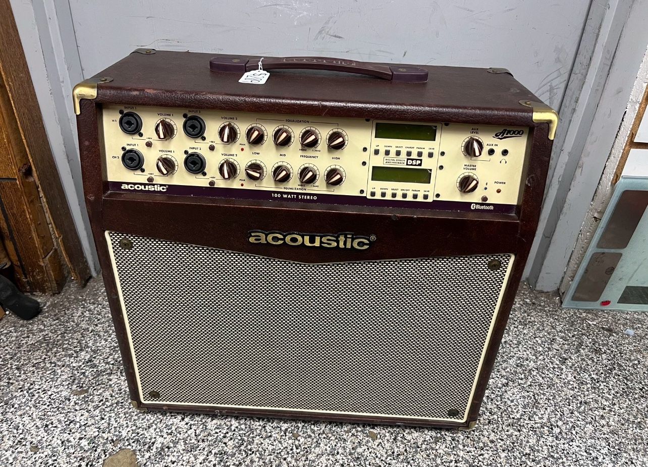 | Product Features | 🌟 Lleva tu sonido acústico al siguiente nivel con el Acoustic A1000. Este amplificador de alta calidad está diseñado especialmente para guitarras acústicas, ofreciendo un tono limpio y rico, ideal para presentaciones en vivo o estudio.💡 Características destacadas:✔️ Potencia de 100W estéreo para un sonido claro y envolvente.✔️ 2 canales independientes con controles de EQ y efectos.✔️ Reverb, delay, chorus y más efectos incorporados.✔️ Entrada XLR para micrófono: ¡perfecto para cantautores!✔️ Salidas DI y USB para grabación o conexión a sistemas de PA.📍 En excelente estado, funciona perfectamente.💰 Precio: $289📩 Contáctame para más detalles o para probarlo en persona.580 E Foothill Blvd Upland CA 91786¡Dale a tu guitarra acústica el sonido que se merece! 🎶🎵 | ||