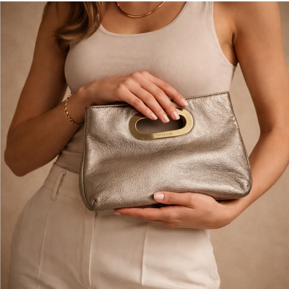 - Women >Bags >Clutches & Wristlets > Michael Kors Metallic Gold Leather Clutch – Cutout Handle