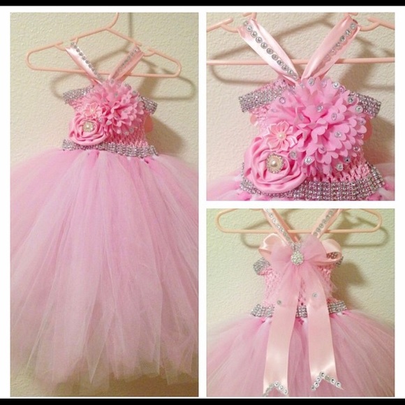| Product Features | 💕 My Daughter's Pageant Dress 💕 Custom Made 💕 Worn once 💕 EUC 💕 $70 💕 No size, but would recommend for a 24m-2T 💕 Details::: top right pic (front of dress), bottom right pic (back of dress), very light/not heavy at all, bow in front and back are removable 💕 Prefect for a photo shoot or pageant | ||