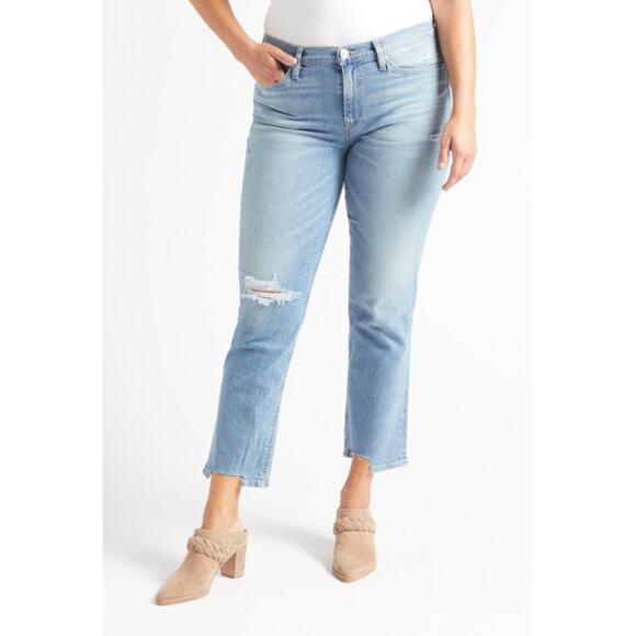 - Women >Jeans >Straight Leg > HUDSON NWT Nico Straight Ankle Chewed Hem Denim Jean // 24