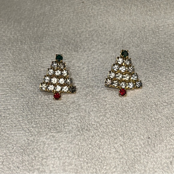 | Product Features | Celebrate the festive season with these charming gold and red Christmas tree earrings. Perfect for adding a touch of holiday sparkle to any outfit.I believe the stones are semi precious-stones or possibly lab created. They were my mother’s purchased off QVC or HSN. They have lasted for decades and gold is not turned, I don’t see any markings. Among the white stones, is one red and two green. Very sparkly and festive! Condition is excellentI don’t see any missing stones BUY NOW FOR $75 BUNDLE for discount BUNDLES OVER $100 for FREE SHIPPING 🚀Smoke free home , c3 | ||