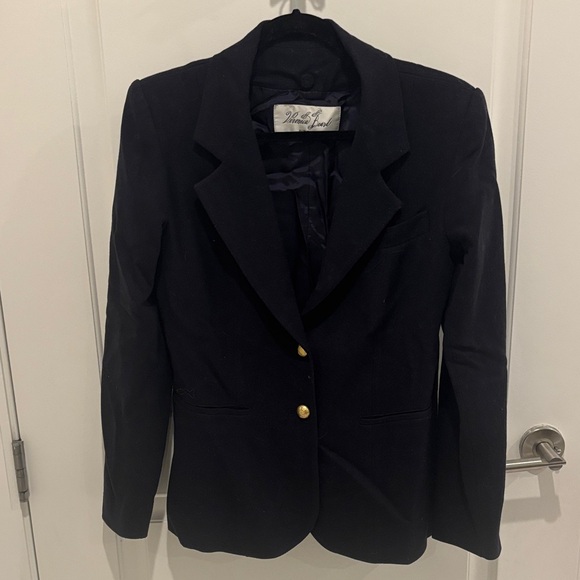 | Product Features | Elegant navy blazer with gold buttons. Center slit on the back. Inside zipper for attachable dickey. | ||